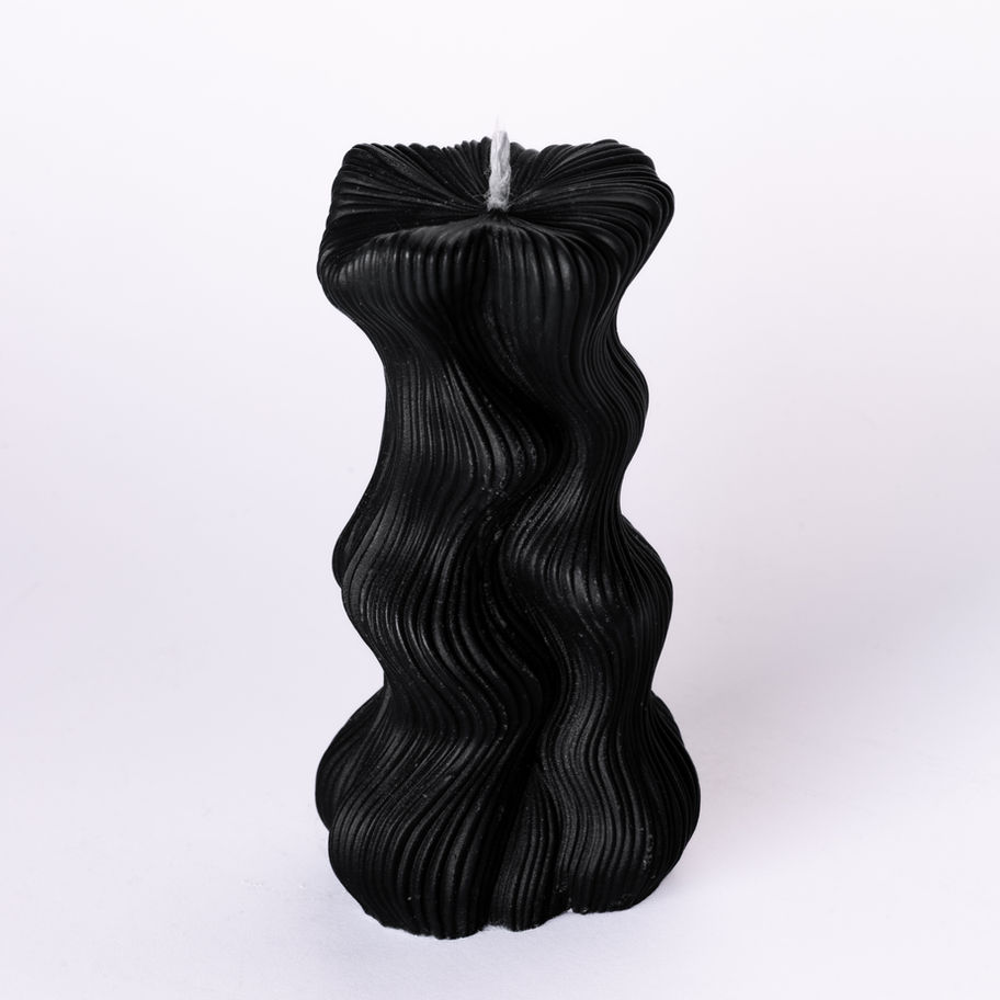 Skulptūrinė žvakė WAVE PILLAR MINI išsiskiria organiška, ritmiškai besisukančia forma, kuri primena banguojančius koralus, sulankstytą audinį ar šviesos bangas.